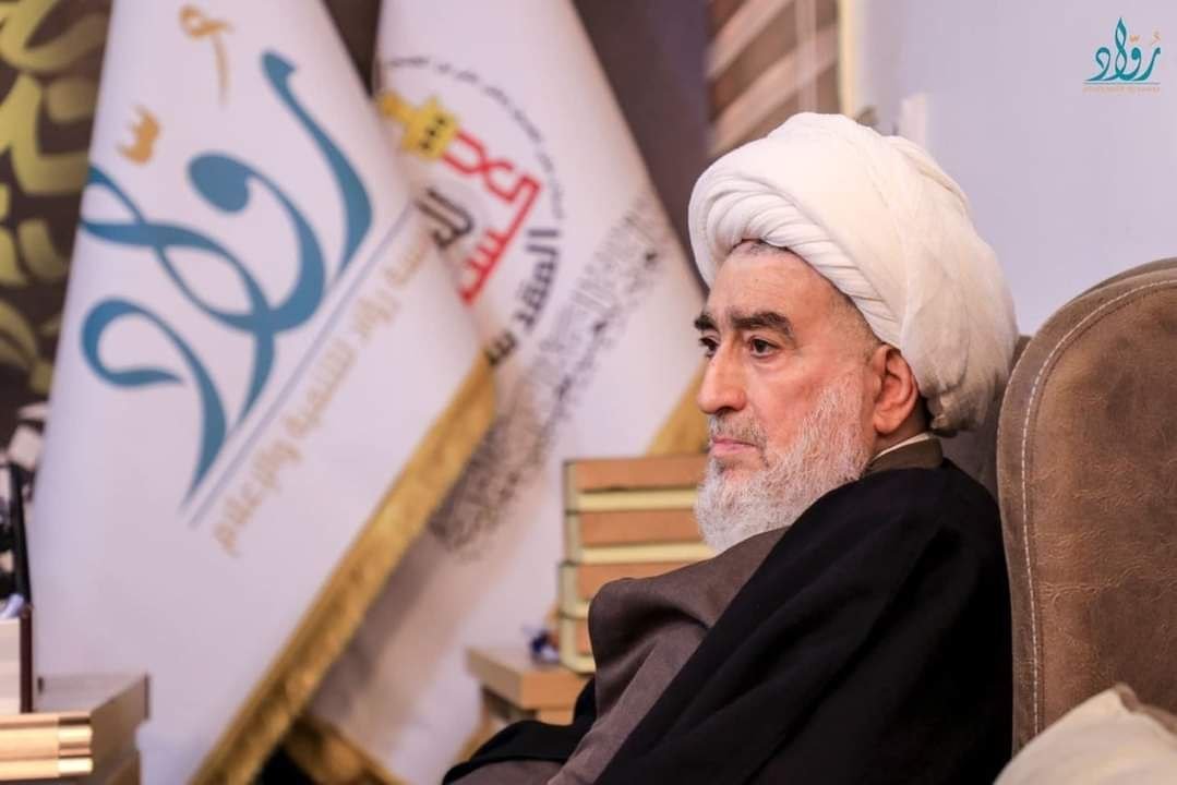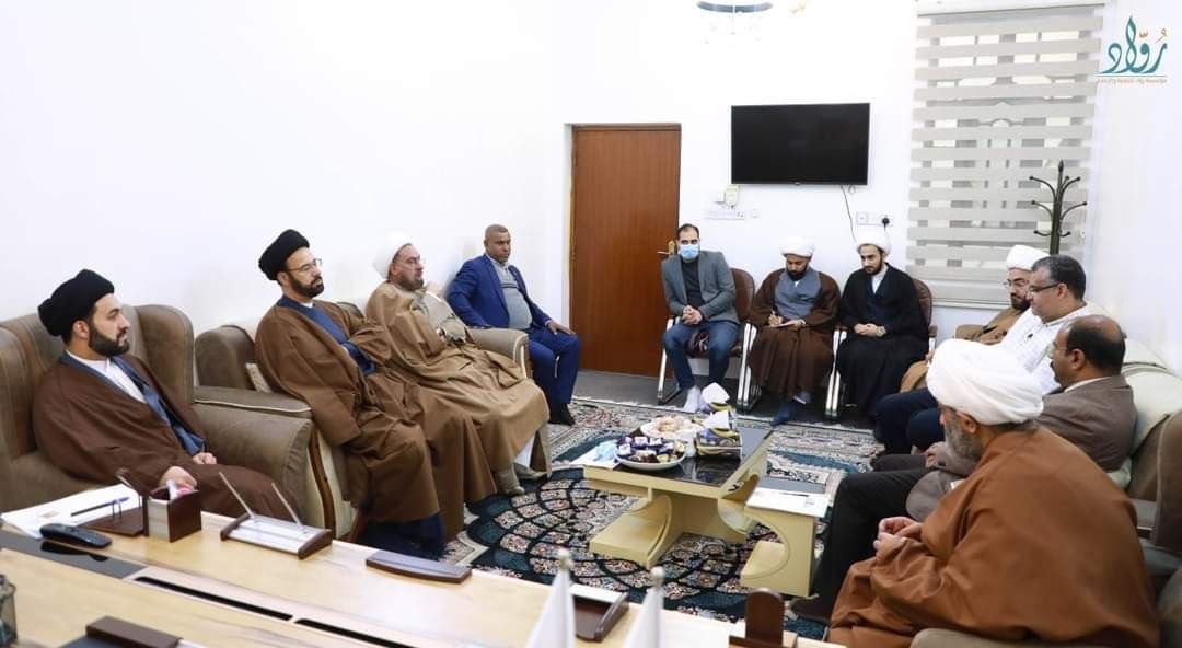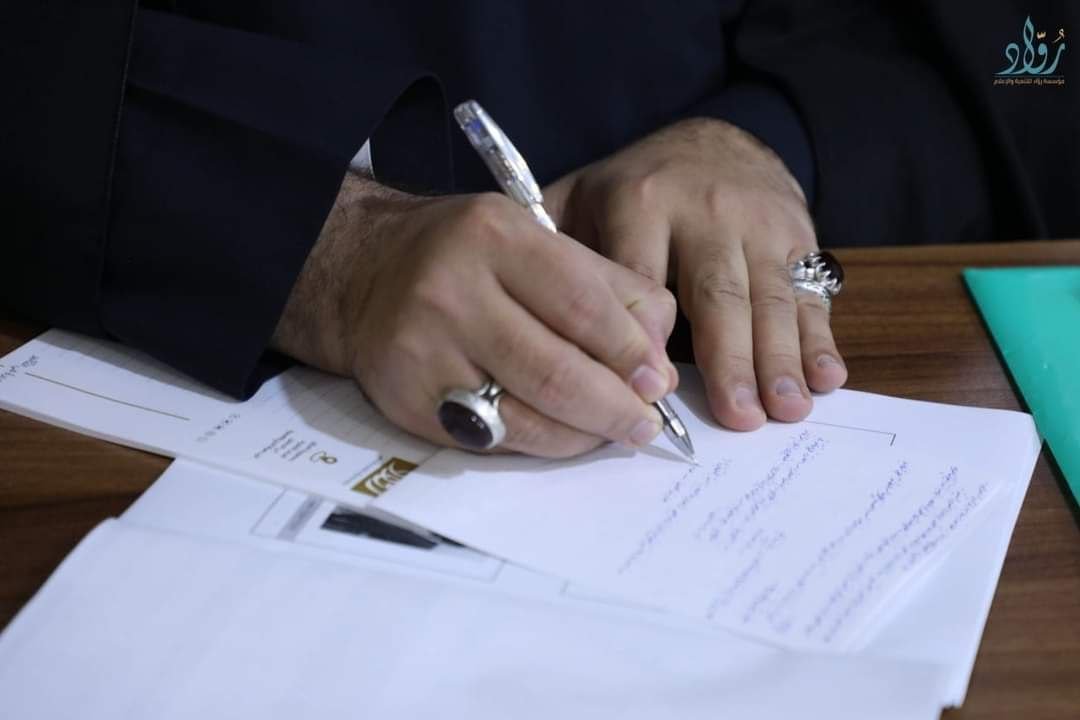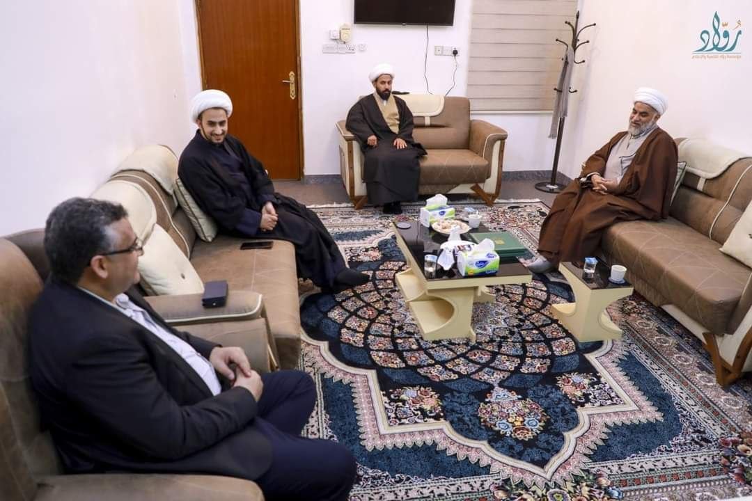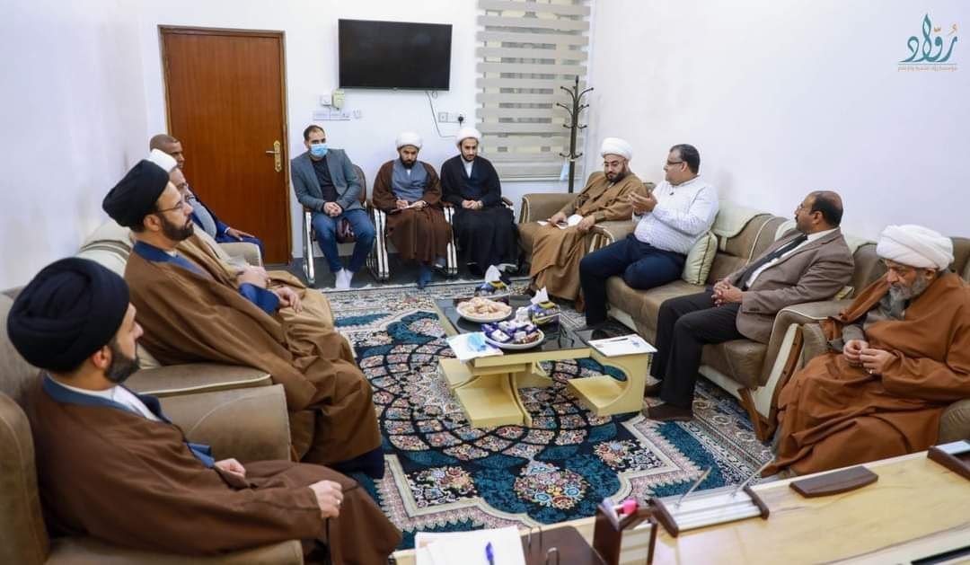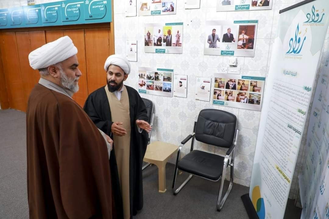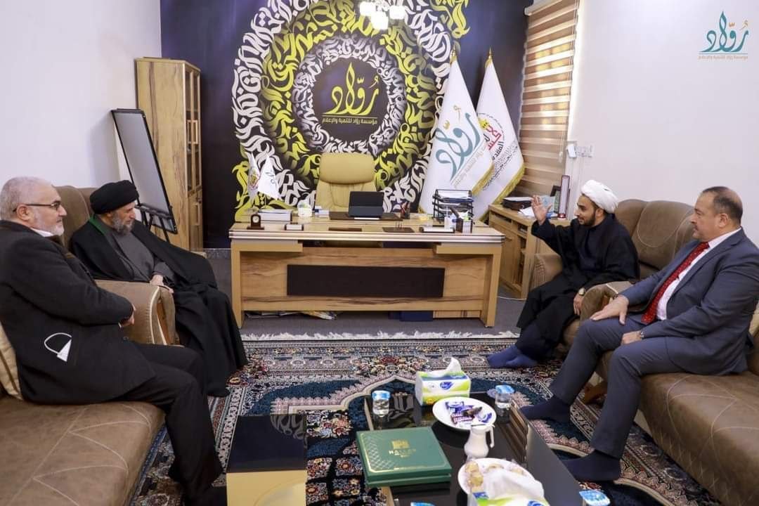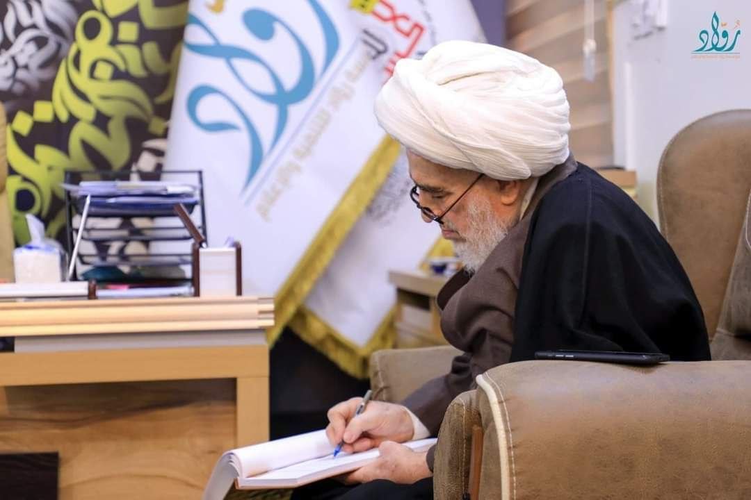 كلمة سماحته: "من دواعي السعادة والسرور تشرفي بزيارة مؤسسة رواد الرائدة في عملها لما تبذله من خدمة عظيمة للنجف الأشرف وللحوزة العلمية الشريفة شكر الله سعي العاملين والمساهمين والراعين للمشروع"