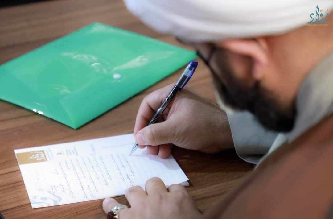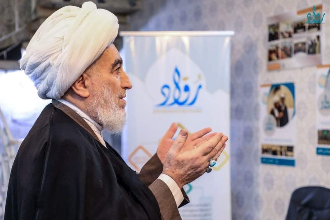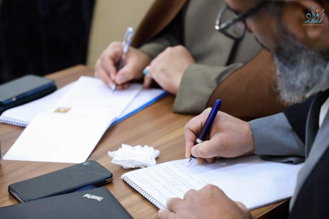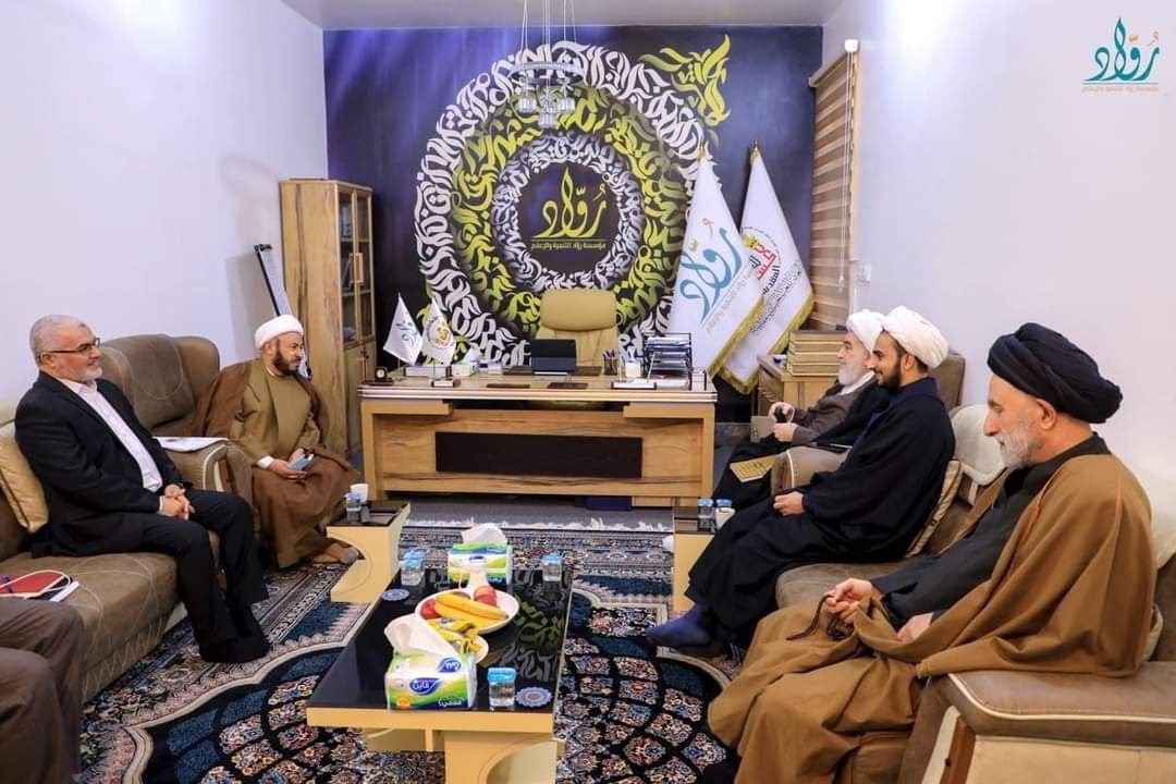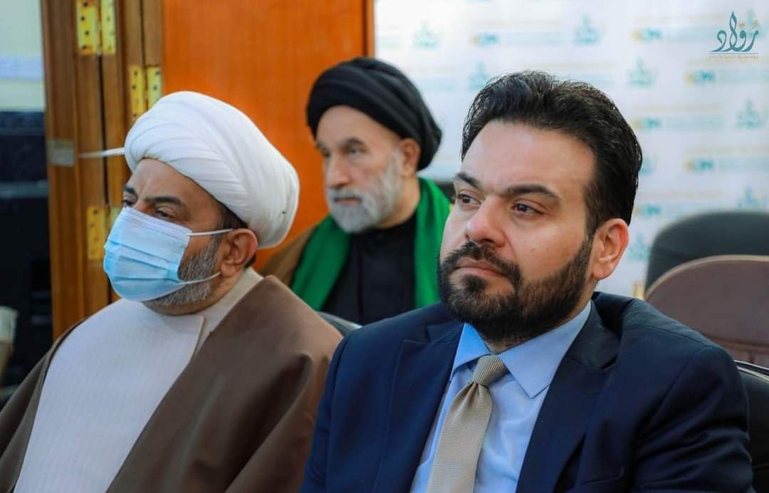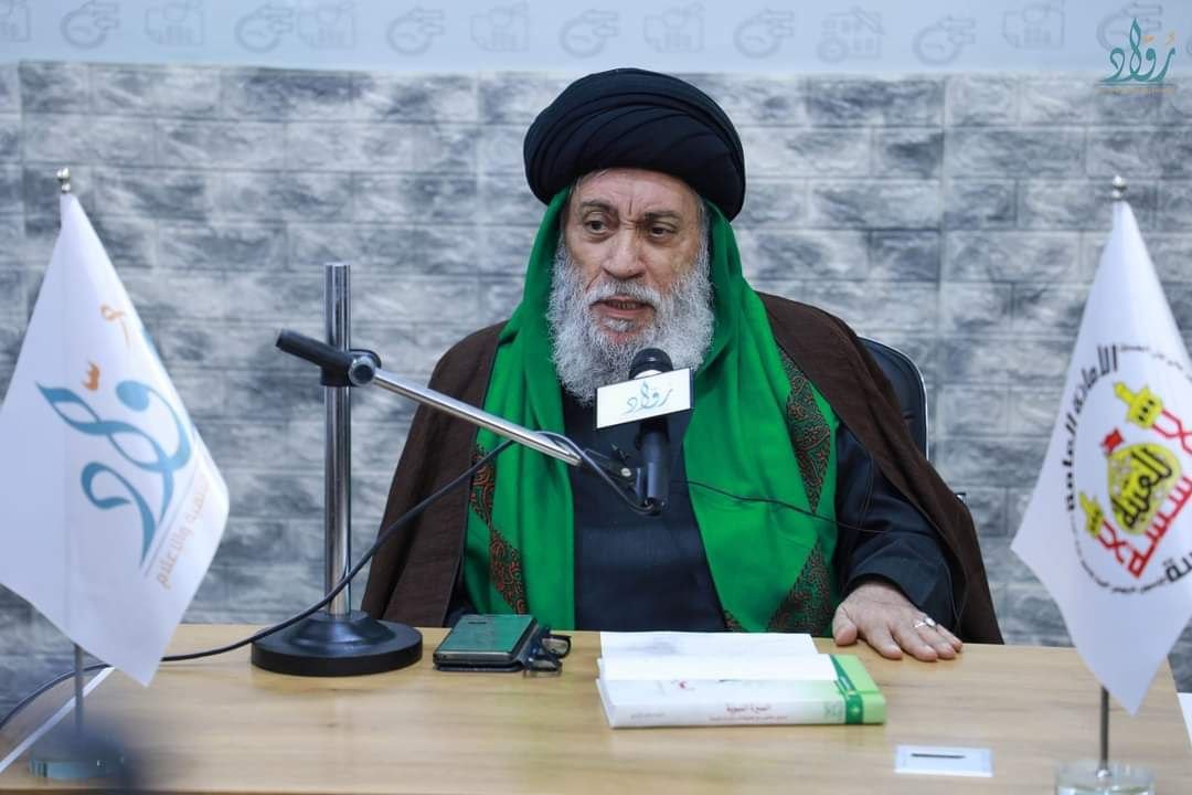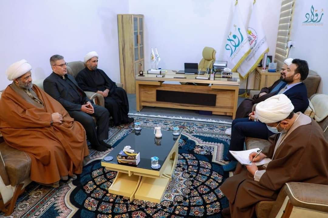 كلمة سماحته: "من دواعي السعادة والسرور تشرفي بزيارة مؤسسة رواد الرائدة في عملها لما تبذله من خدمة عظيمة للنجف الأشرف وللحوزة العلمية الشريفة شكر الله سعي العاملين والمساهمين والراعين للمشروع"