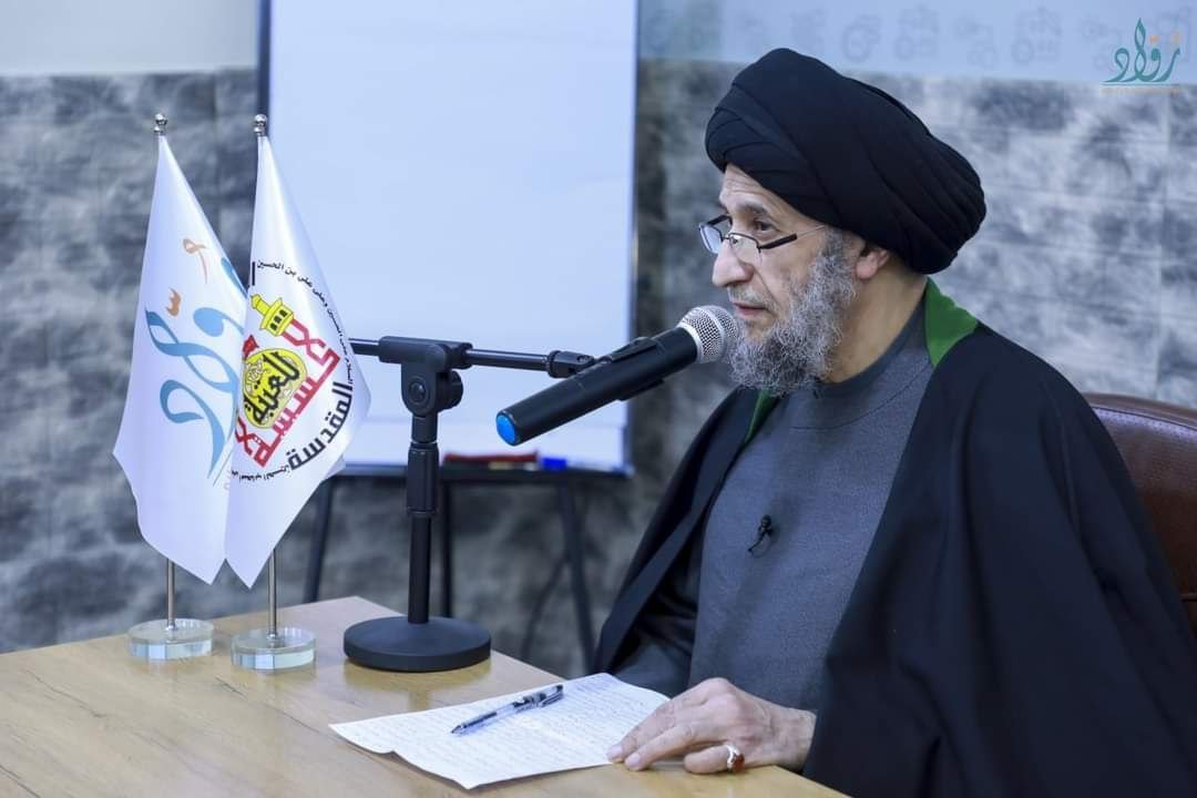 "الذي تقوم به المؤسسة مهنئاً إدارتها والداعمين لها بهذا العمل خدمةً للدين والمذهب مشيراً إلى الأهمية الكبيرة لمواكبةِ ثقافة الزمان بالنسبةِ للخطباء والمبلغين"